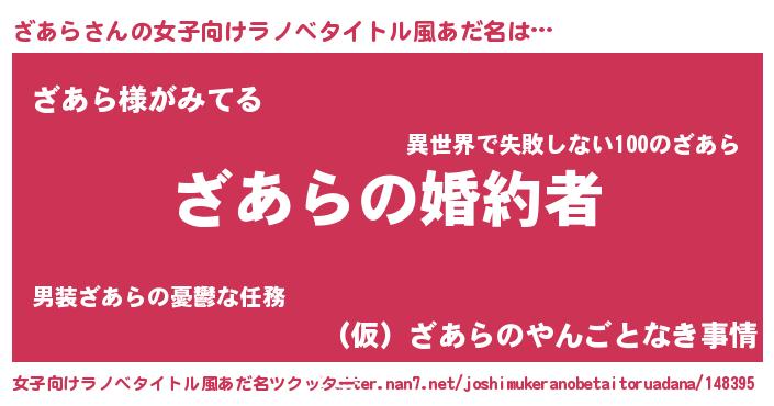 | 男性向けラノベタイトル風あだ名 | 『うちの娘の為ならば、俺はもしかしたらざあらも倒せるかもしれない。』 |