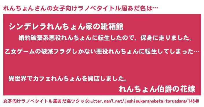 | 意味不明あだ名 | 『住所不定無職れんちょん(2歳)』 |