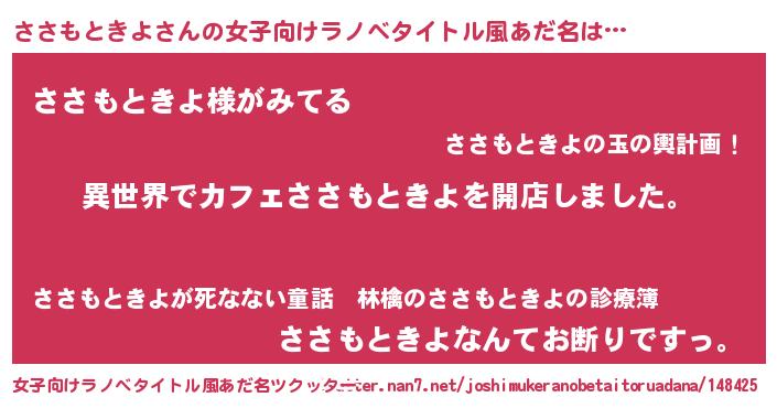 | ヘコむあだ名 | 『ささもときよ(笑)』『ささを』 |