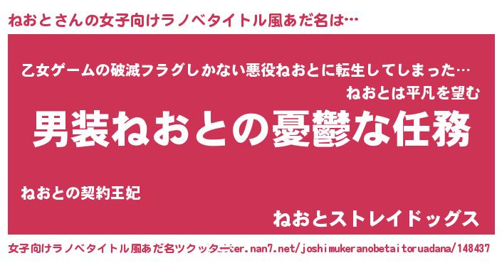 | 伝説のあだ名 | 『覚醒した遊び人ねおと』 |