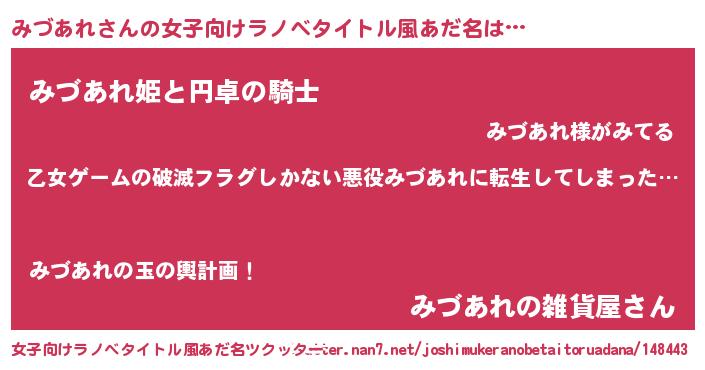 | 男性向けラノベタイトル風あだ名 | 『魔弾の王とみづあれ』『みづあれの憂鬱』 |
