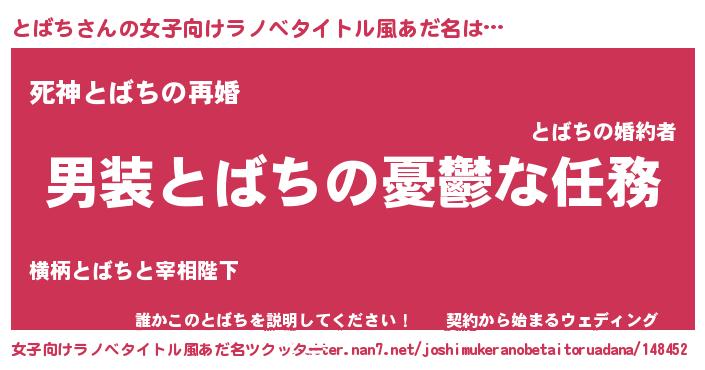 | 男性向けラノベタイトル風あだ名 | 『冴えないとばちの育てかた』 |