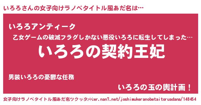 | 男性向けラノベタイトル風あだ名 | 『いろろという概念が存在しない退屈な世界 』 |
