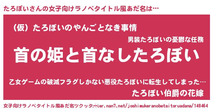 | 男性向けラノベタイトル風あだ名 | 『はたらくたろぼいさま!』 |