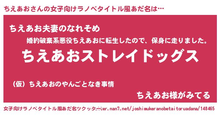 | 男性向けラノベタイトル風あだ名 | 『Re:ちえあおから始める異世界生活』 |