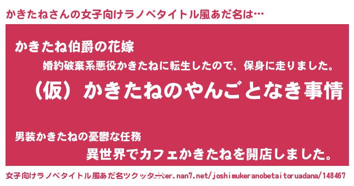 | 胡散臭い通販商品みたいなあだ名 | 『必ず成功する水晶球…その名も「かきたね」』 |