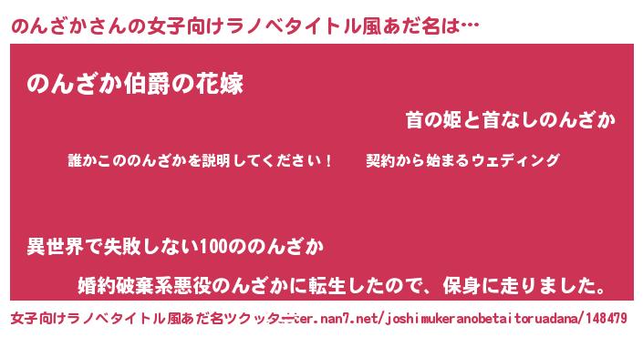 | 男性向けラノベタイトル風あだ名 | 『ノンザカアートオンライン』 |