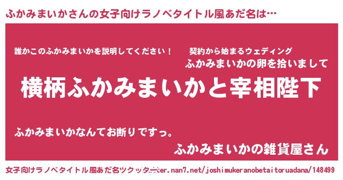 | 胡散臭い通販商品みたいなあだ名 | 『モテモテ間違いなし霊験あらたかなお札…その名も「ふかみまいか」』 |