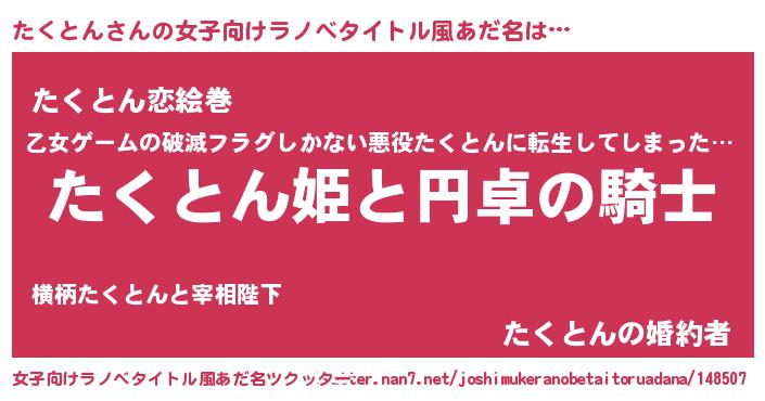| 男性向けラノベタイトル風あだ名 | 『たくとんの憂鬱』 |
