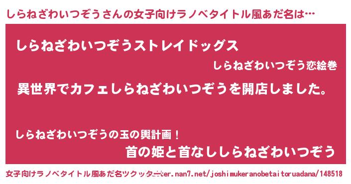 | 意味不明あだ名 | 『永久保存しらねざわいつぞう』 |