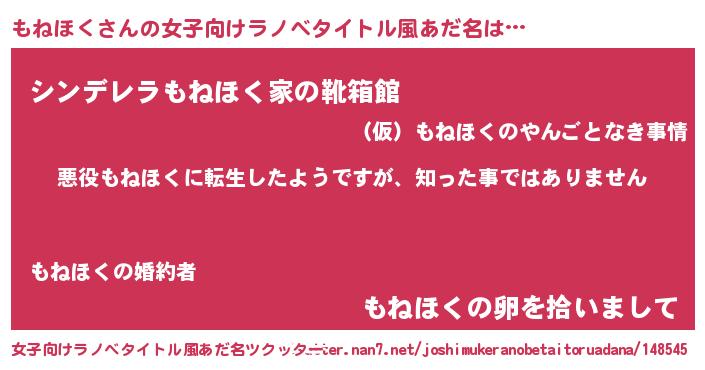| 男性向けラノベタイトル風あだ名 | 『この素晴らしい世界にもねほくを!』 |