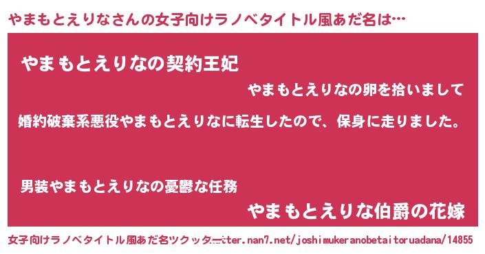 | 男性向けラノベタイトル風あだ名 | 『ヤマモトエリナスレイヤー』 |