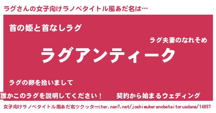 | 意味不明あだ名 | 『自称ラグ』『ペロリンラグ』 |