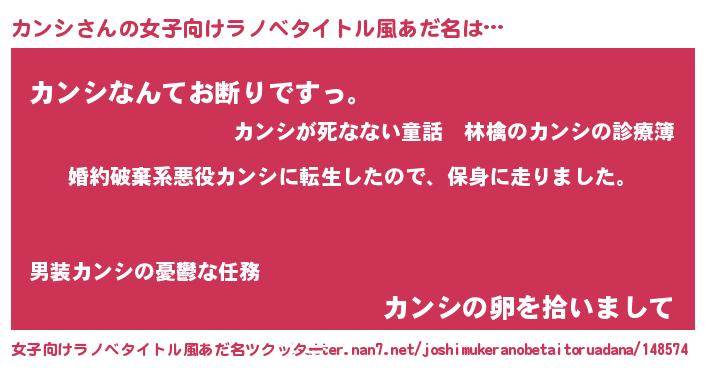 | 男性向けラノベタイトル風あだ名 | 『転生したらカンシだった件』 |