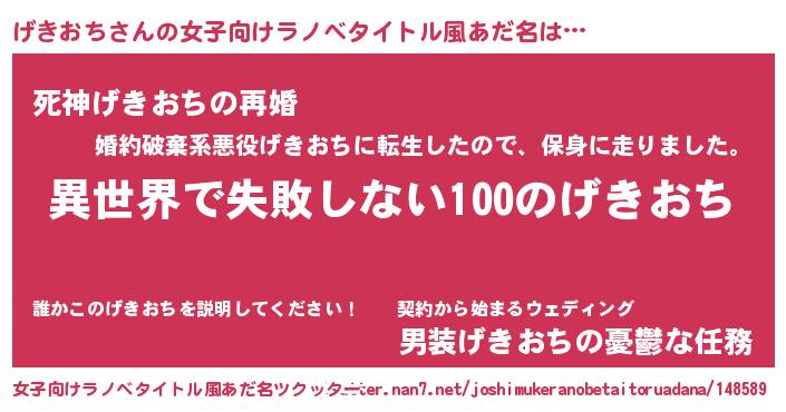 | 胡散臭い通販商品みたいなあだ名 | 『絶対に幸福をもたらす健康食品…その名も「げきおち」』 |