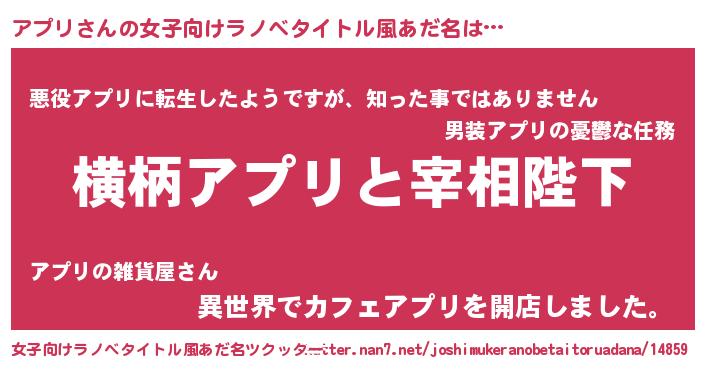 | 男性向けラノベタイトル風あだ名 | 『アプリに滅ぼされるだけの簡単なお仕事です』 |