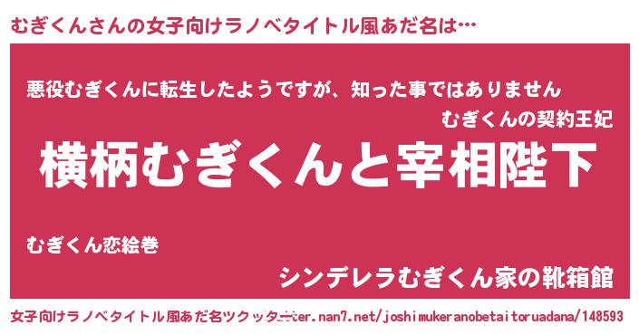 | 男性向けラノベタイトル風あだ名 | 『むぎくんに滅ぼされるだけの簡単なお仕事です』 |