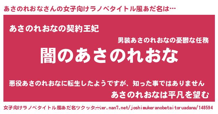 | 意味不明あだ名 | 『自称あさのれおな』 |