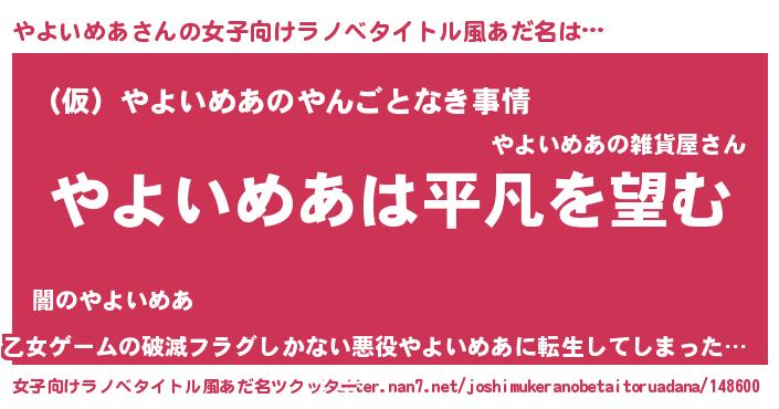 | ヒーロー風カッコイイあだ名 | 『暗黒騎士ヤヨ』『スーパーヤヨイメア』 |