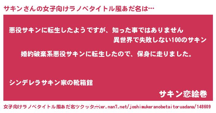 | 男性向けラノベタイトル風あだ名 | 『転生したらサキンだった件』 |