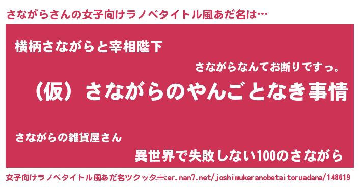 | 男性向けラノベタイトル風あだ名 | 『さながらの憂鬱』 |