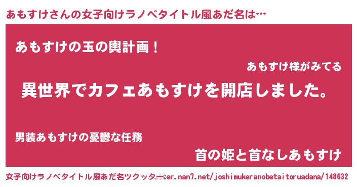 | 男性向けラノベタイトル風あだ名 | 『誰もが恐れるあのあもすけが、ぼくの専属メイドになるようです。』 |