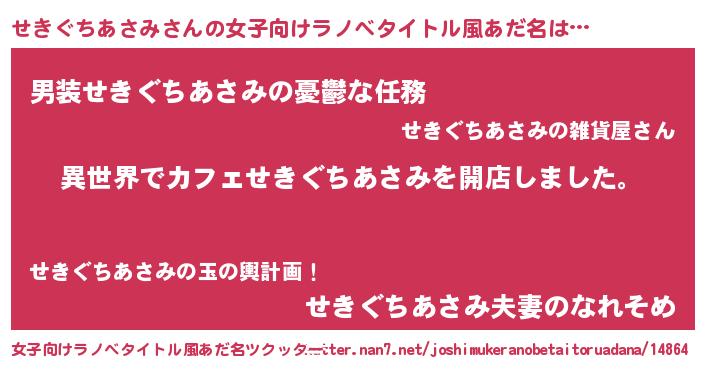| ヘコむあだ名 | 『せきぐちあさみ(笑)』『レバニラ』 |