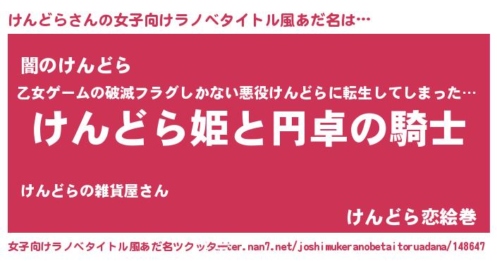 | 男性向けラノベタイトル風あだ名 | 『ケンドラアートオンライン』 |