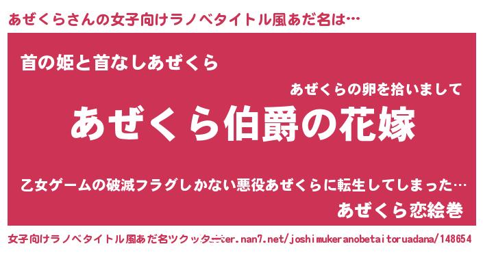 | 意味不明あだ名 | 『あぜくらフォーエバー』 |