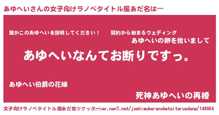 | 欧米人風あだ名 | 『ケンブリッジあゆへい』 |