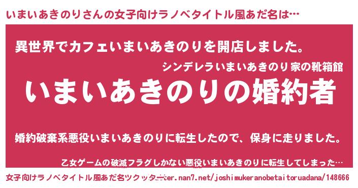 | ファンタジー風あだ名 | 『エターナルイマイアキノリー』 |
