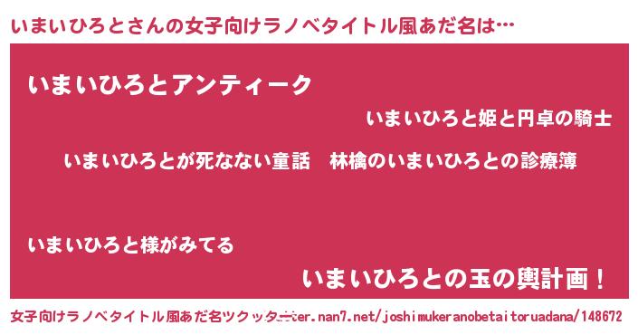 | ヒーロー風カッコイイあだ名 | 『仮面イマダー』『スーパーイマイヒロト』 |
