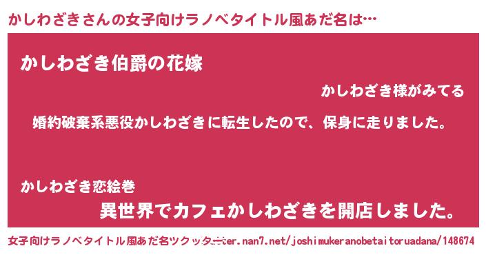 | 胡散臭い通販商品みたいなあだ名 | 『幸せが訪れる高級そうな絵画…その名も「かしわざき」』 |