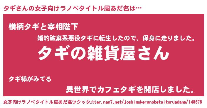 | 男性向けラノベタイトル風あだ名 | 『やはりタギの青春ラブコメはまちがっている 』 |