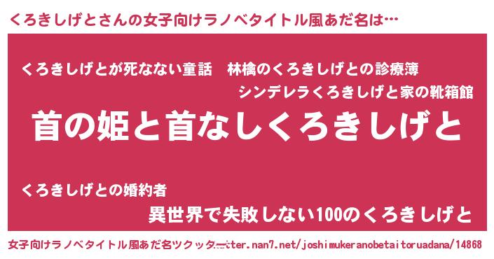 | 男性向けラノベタイトル風あだ名 | 『はたらくくろきしげとさま!』 |