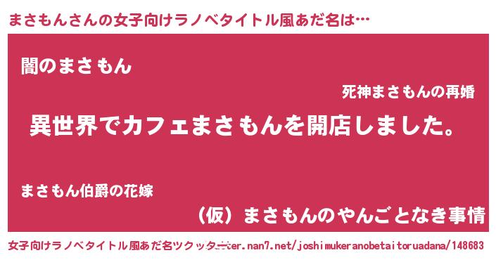 | 男性向けラノベタイトル風あだ名 | 『誰もが恐れるあのまさもんが、ぼくの専属メイドになるようです。』 |