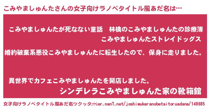 | ヘコむあだ名 | 『こみやましゅんた(苦笑)』『こみもー』 |
