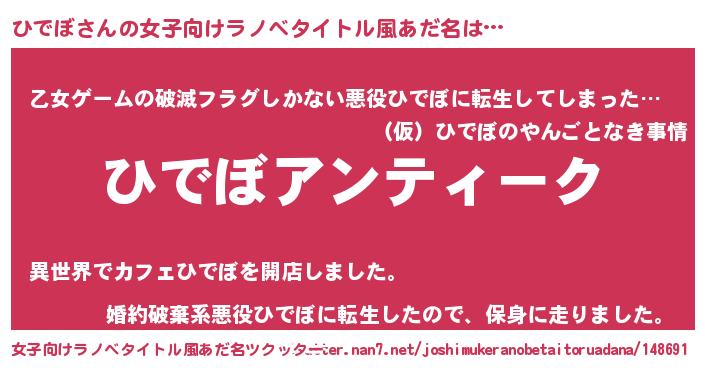 | 男性向けラノベタイトル風あだ名 | 『魔法科高校のひでぼ』『ひでぼの憂鬱』 |