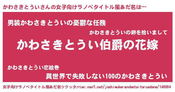 | 男性向けラノベタイトル風あだ名 | 『やはりかわさきとういの青春ラブコメはまちがっている 』 |