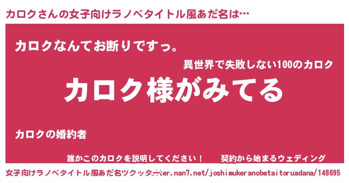 | 男性向けラノベタイトル風あだ名 | 『カロクの嫁は女の子じゃないと思った?』 |