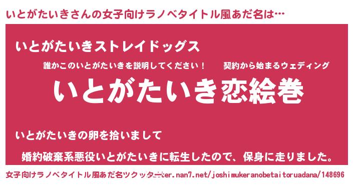 | 男性向けラノベタイトル風あだ名 | 『ノーゲーム・ノーイトガタイキ』 |