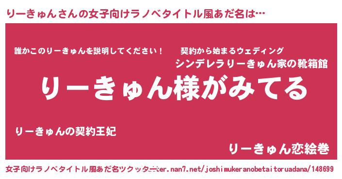 | 意味不明あだ名 | 『とにかく怪しいりーきゅん』 |