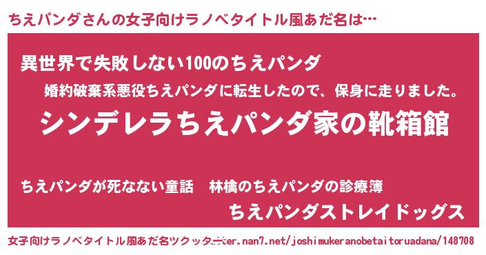 | 胡散臭い通販商品みたいなあだ名 | 『来世でも幸せになれる健康食品…その名も「ちえパンダ」』 |