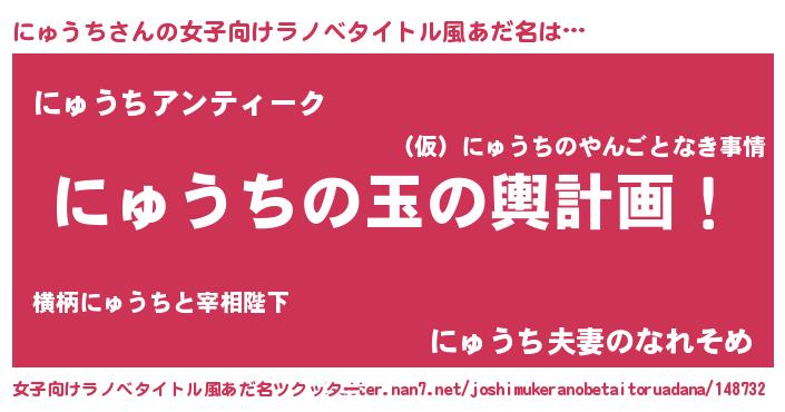 男性向けラノベタイトル風あだ名 | 『転生したらにゅうちだった件』 |