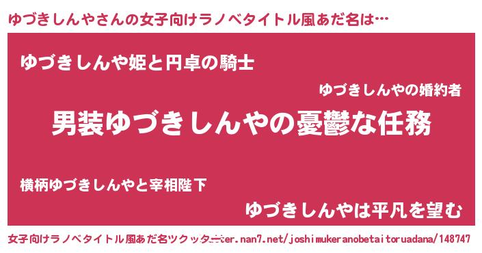 | 男性向けラノベタイトル風あだ名 | 『うちのゆづきしんやが世界を掌握している!』 |