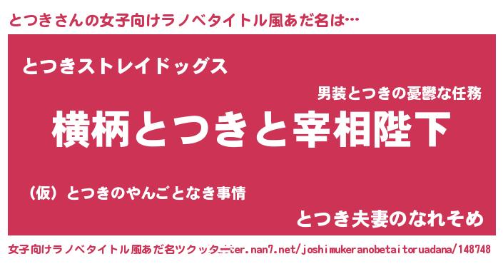 | ヒーロー風カッコイイあだ名 | 『最強戦士トツキ』『慈愛の使者とつき』 |