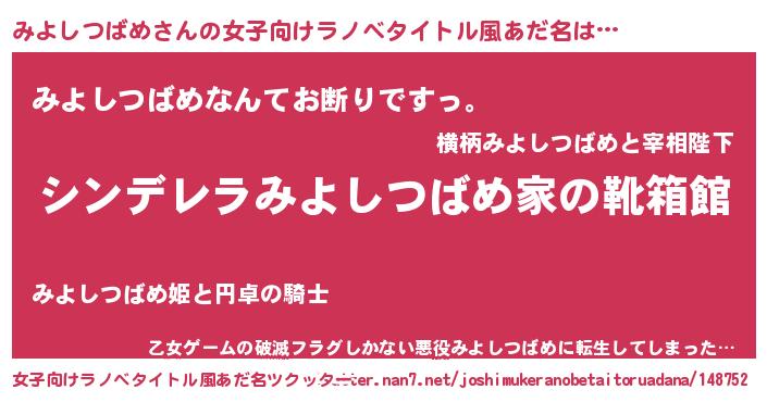 | 意味不明あだ名 | 『自称みよしつばめ』 |
