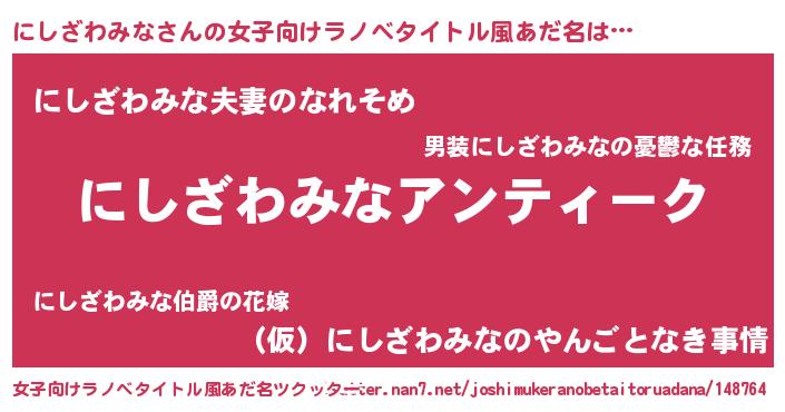 | 男性向けラノベタイトル風あだ名 | 『魔法科高校のにしざわみな』 |