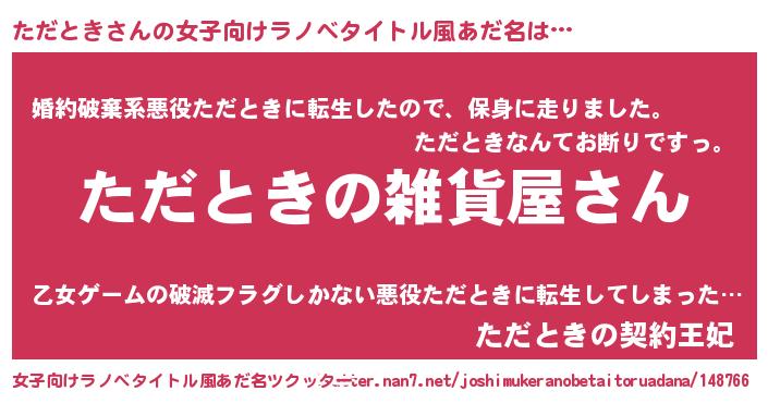| 男性向けラノベタイトル風あだ名 | 『やはりただときの青春ラブコメはまちがっている 』 |