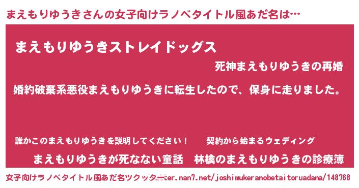 | 男性向けラノベタイトル風あだ名 | 『転生したらまえもりゆうきだった件』 |